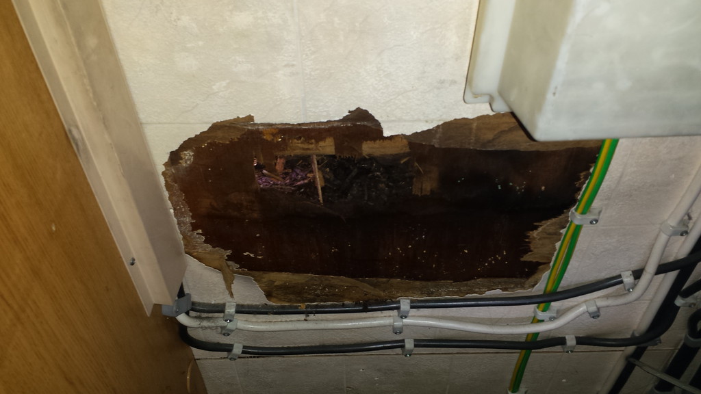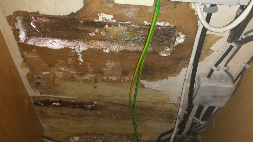 Wie befürchtet hat sich die Feuchtigkeit wohl schon seit Langem durchs Holz gefressen.