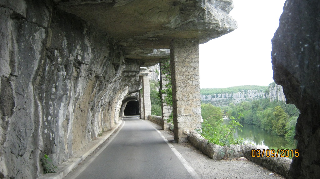 Vor diesem Einspurien Felsdurchlass der mit Ampeln den Gegenverkehr steuert, stand ein Schilg: Durchfahrtshöe 3,10 Meter. Zum Glück ist unser Womo nur 3,09 Meter hoch. 1 cm Luft sollte reichen. :D