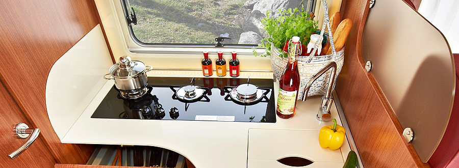 Abdeckung fürs Kochfeld und Arbeitsfläche widersprechen sich m.E. Denn wenn ich am Kochen bin, benötige ich auch den Kocher. Sinn macht u.U. eine Abdeckung über der Spüle. Diese benötige ich, von Ausnahmen abgesehen, erst wieder, wenn ich mit kochen fertig bin. Dann sollte aber der Wasserhahn nicht ins Spülbecken integriert sein, da ich öfter mal beim Kochen auch Wasser benötige. Mir sind inzwischen die aufgebauten Glaskochfleder von CAN sympatischer. Dort sitzen die Brenner nicht in einer Mulde, was mich bei der Verwendung von größeren Pfannen auf unserem Cramer/Dometic Kochfeld auch schon wieder eingeschränkt hat..... Eine vernünfitge Womoküche sollte auch so genügend Arbeitsfläche jenseits von Kocher und Spüle bieten..... :wink: Roman