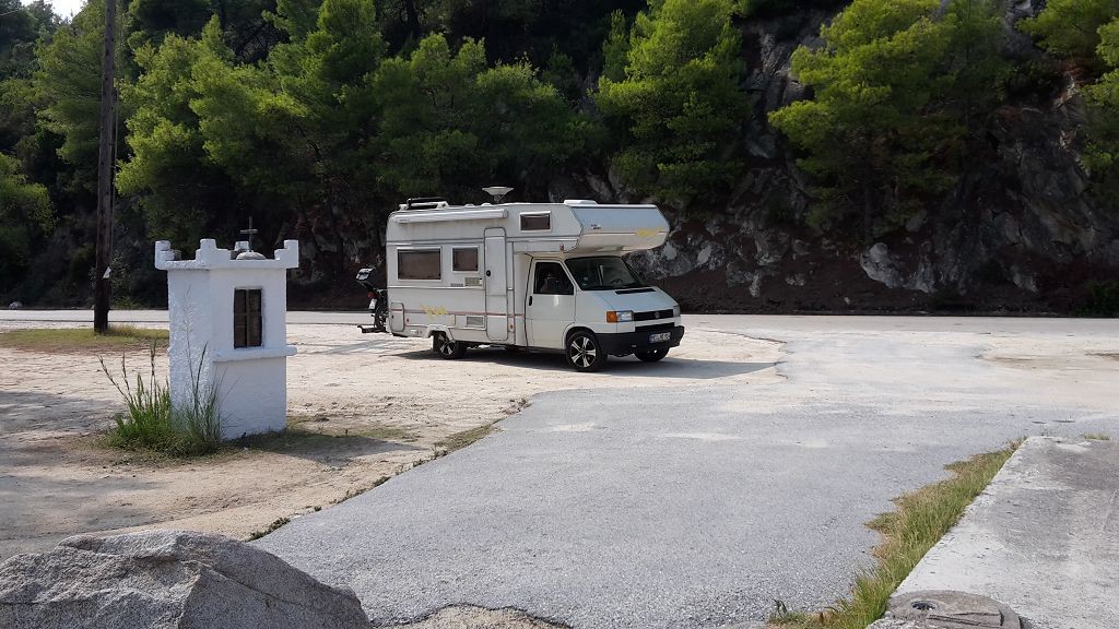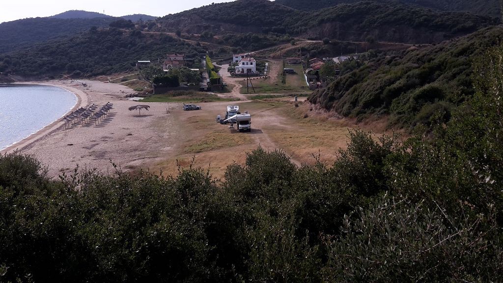 Ich hatte immer noch den Strand unterhalb von Nikiti im Kopf. Da war es schön, das Meer ruhig und die Womos standen schön aus einander.