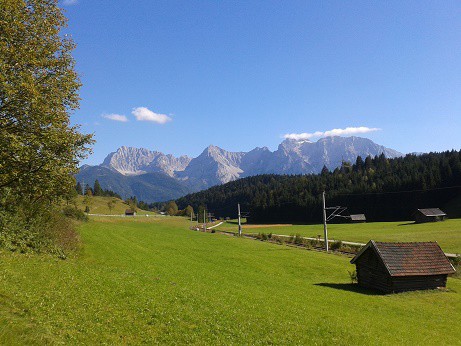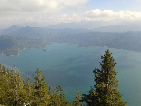 Mein Ladekabel für Handy und Tablet funktioniert nicht mehr. Wir fahren deshalb ins 25km entfernte Garmisch-Partenkirchen zum dortigen Elektronik-Markt, wo ich für 15 Euros ein neues besorge. Foto 1 auf der Rückfahrt Richtung Walchensee...Foto 2 SP in Wallgau, wo ich die nächste Nacht verbringen werde.