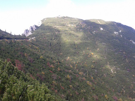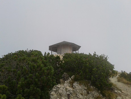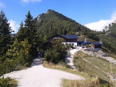 Links der Berggasthof 10min. von der Bergstation. Rechts der Aufstieg zum Gipfel ca. 30min.