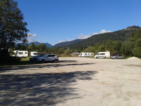 Ruhiger einfacher Schotterplatz ohne Infrastuktur (ausser Dixi-Klo) für 4.-Euro(Parkscheinautomat) direkt an der Isar.