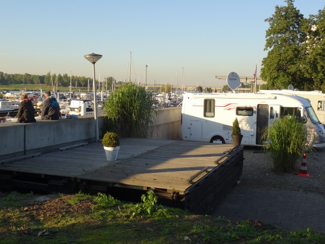 Der Stellplatz ist eigentlich ein Parkplatz einer Werft die gleichzeitig Betreiber des Yachthafens ist. Man steht dort im umzäunten und gesicherten Werftgelände; sicherer kann man wohl nicht stehen. Dort parken auch die SUVs aus dem Ruhrgebiet, die ihre Yacht dort liegen haben. Absolut ruhig. Platz ist für ca. 15-20 Womos.