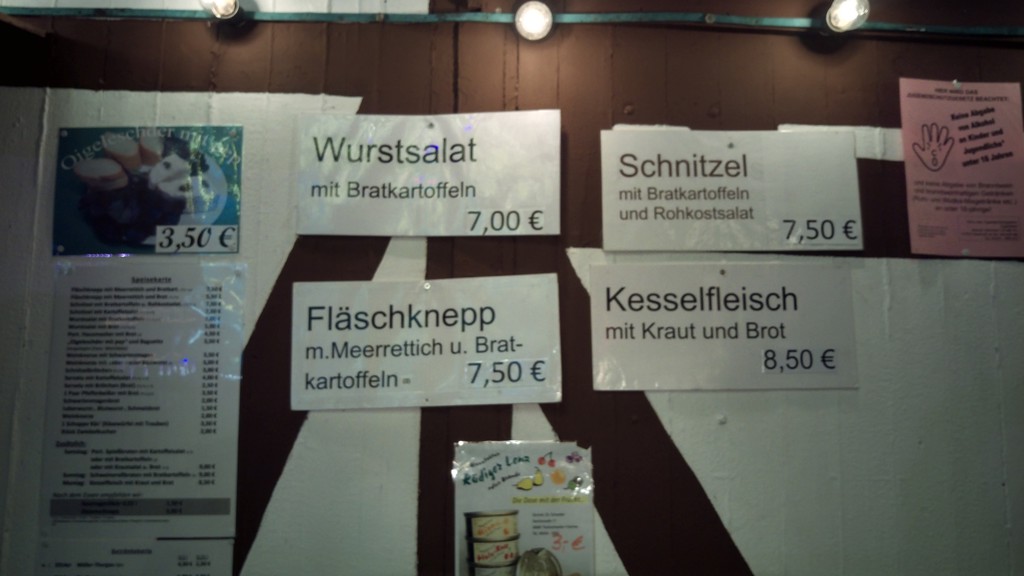 Als erstes mal Orientierung aufgenommen: Was kosten die Fleschknöpp? Was der Wurstsalat?