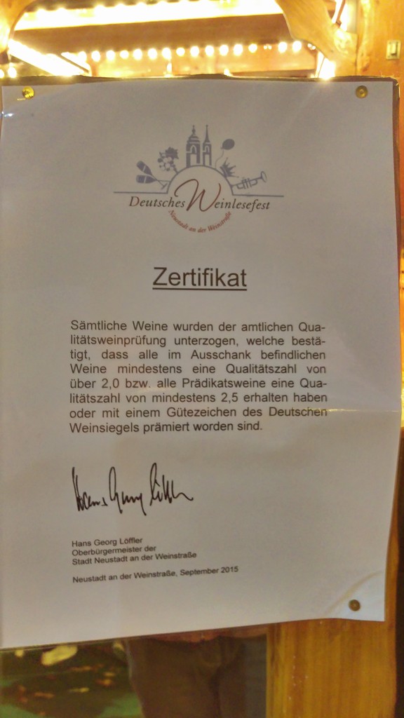 Schon oft habe ich gehört, dass die Qualität dem Preis entspricht. So ist es nicht! Unser OB Löffler lässt es sichnicht nehmen persönlcih für die Qualität zu bürgen. Böse Zungen behaupten dass die Verkostung der Proben die Menge seiner Amtszeit in Anspruch nimmt. :|
