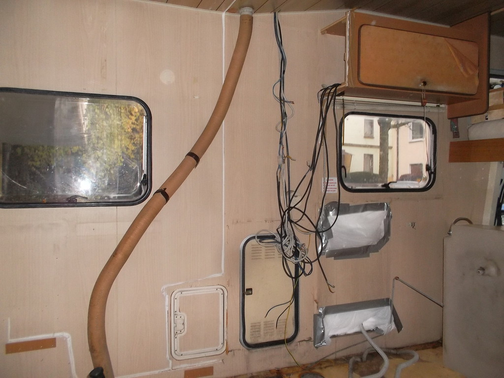 Die Innenmöbilierung würde ich selbst und nach meinen Vorstellungen einbauen. Die Küche mit Kühlschrank und Gasherd soll wieder eingebaut werden. Auch eine neue Nasszelle soll eingebaut werden. Außerdem möchte ich das Wohnmobil weitest gehend Winterfest machen, das heißt, möglichst überall die Isolierungen verbessern. Die Wände sind ja bereits mit Styropor isoliert. Allerdings merkte man schon vorher, dass es an einigen Stellen unangenehmn zieht.
