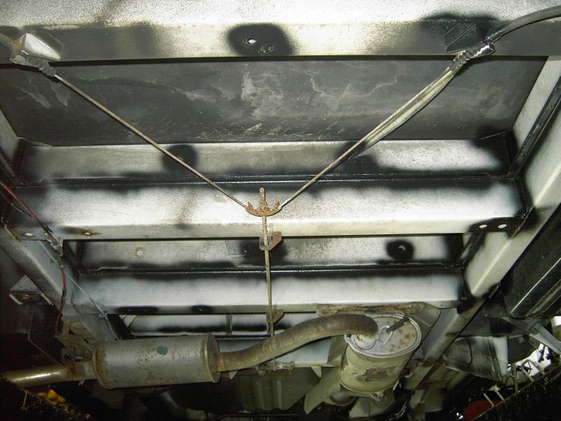 Also die Bodenplatte hat im Gang über die Jahre gelitten. Die schwingt im Ganzen. Unterm Tisch und vor dem Heckbett ist alles fest. Der Problembereich ist der Teil hinter den Sitzen, vor dem Küchenblock über die 2 Felder zwischen den Rahmenteilen. Das Mobil ist aus erster Hand, aber das Ehepaar gehörte auch zu den "stabilen" Artgenossen und beide knackten die 100er Marke, wie ich auch. Von unten werden wir die Tage mal schauen ob und was wir da zwischen die Querstreben machen können. Bild von unten hatte ich ja gepostet.