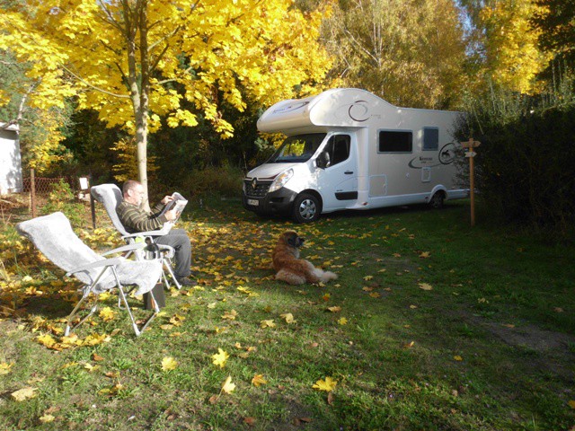 Diesmal sollte es an den Mellensee gehen. Wir haben uns dann einen entsprechenden Stellplatz ausgesucht (mal sehen, ob ich das hinbekomme, denn in der SP-Datenbank einzustellen, obwohl sich das kaum lohnt, ist nur Platz für 2 Mobile :mrgreen: ). Der SP hat auch einen Fahrradverleih, sogar mit e-bikes. Er liegt direkt am See - allerdings am Neuendorfer See. Ein Privatgrundstück, der Weg zum See ist verwunschen mit viel Schilf, wo man sich hindurchschlängeln muß, dann findet man aber über einen Steg eine Plattform mit Bank und sitzt so quasi fast im See. Wenn die Sonne scheint und die Schwäne und Enten dort vorbeiziehen, die Wölkchen und der blaue Himmel sich im See spiegeln - Romantik und Natur pur! Die Eichhörnchen spielten um unser Womo herum, die Kraniche waren am Himmel und die Wildgänse nicht zu überhören (allerdings nicht zu sehen). Mit dem Hund konnten wir wunderschön laufen. Ehemals wurde dort Gips abgebaut. Es gibt dort einen recht hohen Berg, wo man ein Stück ziemlich steil bergan laufen kann, dann aber oben einen wunderbaren Wanderweg vorfindet mit herrlicher Aussicht. Es gibt dort einige Angelgewässer. Lediglich mit der Infrastruktur hapert es ein wenig. Wir wollten essen gehen - das nahe gelegene Hotel-Restaurant "Zum märkischen Landmann" hat kein Restaurant mehr. Da hieiß es, ein ganzes Stück durch das Dorf Sperenberg zum nächstmöglichen Lokal zu laufen, war am Abend dann nicht so wirklich schön, unser Hund läuft auch nicht gern Straße. Wir fanden dann nur den "Alten Krug" - alt sah der wirklich aus! :mrgreen: Das Haus hat echt schon bessere Tage gesehen. Aber wir ließen uns von diesem Anblick nicht einschüchtern - die Speisekarte las sich gut! So kehrten wir dort ein und waren angenehm überrascht. Für 9.80 bekamen wir ein tolles Essen, Schweinemedaillons mit Champ. und Kräuterbutter und wahlweise Pommes, Kartoffeln oder anderes. Der Weg zurück durch das dunkle Dorf war dann zwar auch nicht so schön, aber wenn man satt und zufrieden ist, dann geht das :lach: . Für den nächsten Tag wollten wir dann doch noch etwas einkaufen (hatten eigentlich vor, auch an diesem Tag essen zu gehen, aber denselben Weg wollten wir dann doch nicht machen und das dritte Restaurant im Ort hatte Urlaub, also mußten wir das Wohnmobil bewegen. Leider sind wir in die falsche Richtung gefahren - in Richtung Baruth. Und da ging es weit, weit durch Wald, nichts zum Einkaufen. In die andere Richtung wäre besser gewesen - da gab es am Ortsausgang Richtung Trebbin einen Rewe, was wir aber erst bei der Fahrt nach Hause entdeckt haben. Aber die Fahrt durch die herbstlichen Wälder war auch wunderschön! Zwischendurch haben wir mal gehalten und sind ein Stück spazieren gegangen, das Wetter war herrlich! Leider muß man immer mal einige Umwege in Kauf nehmen, da Strassen saniert werden. Also unsere Einkaufstour betrug dann auch etliche Kilometer :mrgreen: , was uns aber doch nicht gestört hat.