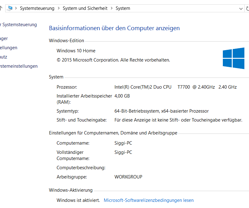 Wer sagt denn sowas? Nun ja, praktisch gesehen ist es einfach: Du hast Win 10 drauf und dazu einen Key. Den hebst du auf und der wird auch bei Neuinstallationen und Updates funktionieren. Ob Win 10 jemals was wirklich was kosten wird bleibt abzuwarten. Ich halte es für einen Marketinggag von MS um die Leute möglichst schnell zum Update und die Anzahl der Installationen hoch zu treiben. Rechtlich gesehen ist es so, dass du ohne Win 7 Lizenz keine Berechtigung hast WIn 7 oder 10 zu nutzen. Und da reicht nicht ein einfacher Zettel, sondern nur ein echtes Zertifikat blablabla.. So der zweite ABsatz war zum Trollen, damit sich jetzt die halbwissenden Juristen hier die Köppe einschlagen. LongJohn: Mach dich locker, passt schon alles. Hallo LongJohn, ich habe mit dem Windows 10 Produkt Key meinen Laptop komplett neu installiert. Nach dem Upgrade von Windows 7 auf Windows 10 habe ich den Produkt-Key ausgelesen (Produkey gegoogled) dann den Rechner komplett gelöscht und mit der vorher runtergeladenen Windows 10 Home Version, auf DVD gebrannt, das Betriebssystem neu installiert. Ob der Produkt-Key auch auf einen anderen bzw. neuen Rechner funktioniert, weiß ich nicht. Das steht ja auch nicht zur Debatte, denn bei einem Kauf eines neuen Rechner hat man normalerweise ja schon Windows 10 drauf oder zumindest die Option zum kostenlosen Upgrade. Ob Windows 10 dann auch wirklich aktiviert ist, kann man leicht überprüfen: Einstellungen - System - Info, dann rechtes Fenster unter "Systeminfo" Windows ist aktiviert .... ![]() Genau, den Windows 7 Lizenz Schlüssel brauchst gar nicht mehr. Die OS Lizenzen sind schon seit langem auf den PC fixiert, du darfst die nicht einfach auf einen neuen Rechner übertragen. Somit hast du also eine aktivierte gültige Windows 10 Lizenz. Die updates werden automatisch installiert. Wenn du aber Windows 7 und Windows 10 auf dem Gerät nutzen wilst, dann würde ich empfehlen, zurückstellen auf Windows 7 wenn's icht schon zu spät ist, Produkt Schlüssel auslesen und neu updaten auf Windows 10. (das ist jetzt nicht ganz ernst gemeint) Ernst Hallo Folgendes Szenario Auf meinem Rechner muss Windows neu installiert werden.(aus welchen Gründen auch immer). Win7 Cd ist nicht vorhanden, aber vom Verkäufer ist Win7 installirt worden.Win10 Update CD gibt es ja auch nicht. Das was ich habe ist der Key von Win10. So, jetzt muss der Rechner platt gemacht werden. Und wie bekomme ich Win10 wieder drauf? Im Moment nur in dem ich ein Sytemabbild erstelle. Aber von einer externen USB Festplatte kann ich ja dieses nicht starten. Also muss zumindest eine Boot CD erstellt werden. Oder kann man sich Win10 irgendwo komplett runter laden sodass ich dann nur noch den jetzigen Key benötige ? LongJohn Nachtrag:Hiermit müsste es doch gehen oder? --> Link