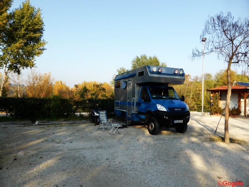 und von dort aus ständig an der Ostseite des Sees entlang bis nach Monzambano (im Süden des Sees), wo wir – fast schon traditionell - immer eine Zwischenstation machen. Grund ist, dass Monzambano eine recht nette Stadt, der Stellplatz in Monzambano wirklich sehr schön ist und dass im eine geniale Pizzeria köstliche Sachen anbietet. Außerdem bietet sich der Stellplatz geradezu für Ausflüge in die nähere und weiter Umgebung des südlichen Gardasees an: