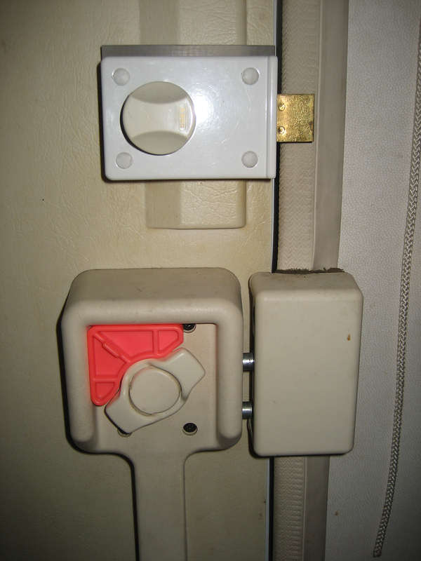Ich habe irgendwo mal gesehen, dass es kleine Kunststoffdreiecke gibt, um den Inneren Türgriff der Aufbautür zu verriegeln, finde die Teile aber leider nirgends. Die werden einfach nur reingeklemmt, so dass man den Türgriff von aussen nicht runterdrücken kann.
