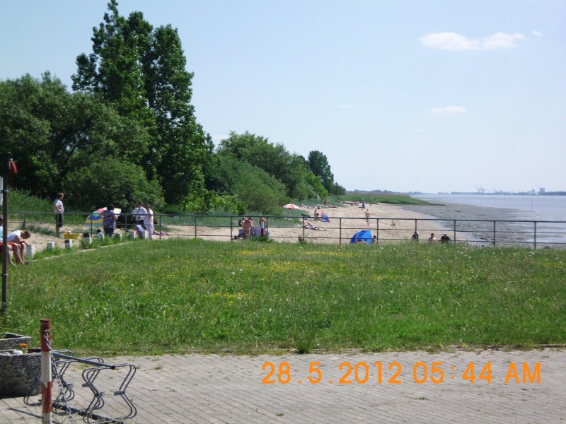 Keine Straße mit Durchgangsverkehr ( Sackgasse ), aber viel viel Gras, Sand und Wasser zum Toben und Spielen und freier Blick auf die rege Weser-Schifffahrt.