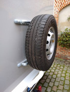 Nun hatte ich in einer schlaflosen Nacht die Idee, einen Halter mittig in die Heckgarage, die ist dafür groß genug, zu schrauben und das Reserverad dort fixiert zu verbauen.