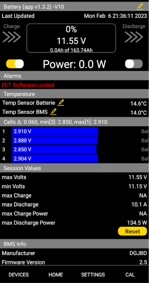 Und in der Tat ist es ein Rätsel, dass bei einer Temperatur von 3,2 bzw. 2,2 Grad Celsius die Solaranlage mit 0,31 A laden kann, wenn du wirklich auf "charge unter temp 5/10 Grad" nicht nur umgebessert, sondern auch ins BMS geschrieben hast - der Schalter rechts oben "BMS write". Dein Screenshot zeigt das Bild nach Korrektur aber ohne Speicherung im BMS.