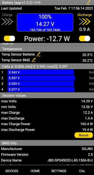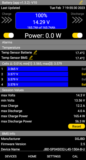 Was mich gewundert hat das die Temperatur vom Accu ziemlich schnell nach oben gegangen ist. Habe den Tricker von 8C auf 10C eingestellt damit das laden später beginnt.