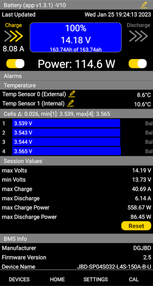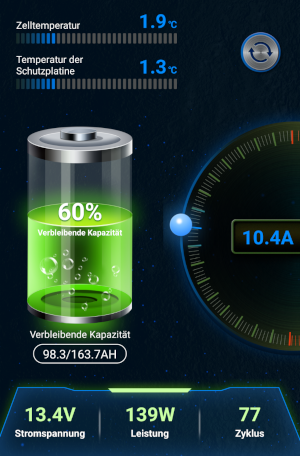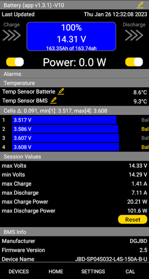 Das BMS wird den Ladezweig aber erst freigeben, wenn der AKKU ausreichend temperiert ist, also gemäß den jetzt von dir gemachten Einstellungen bei über 8 Grad lt. App. Unter 5 Grad Akkutemperatur wird der Ladezweig wieder abgeschaltet und du hast eine weitere Abschaltung auf dem Zähler :mrgreen: .