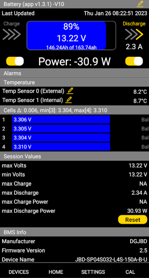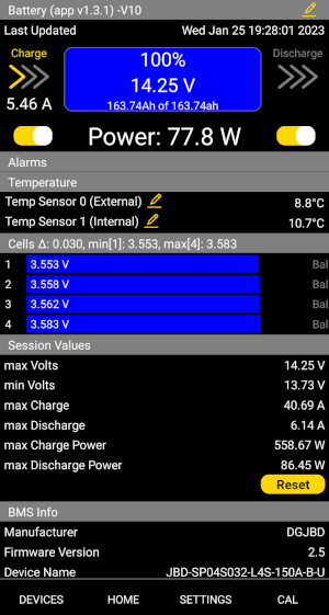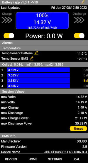 horst62 hat geschrieben:Es ist das -- JBD-SP04S032-L4S 150A B U -- BMS verbaut. Die LiFePo4 wurde im Sommer 2021 eingebaut und hat 79 Ladezyklen. Würde gerne eine zweite einbauen da ich ca. 200A Entladestrom benötige.