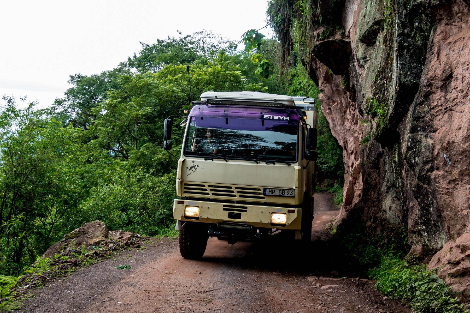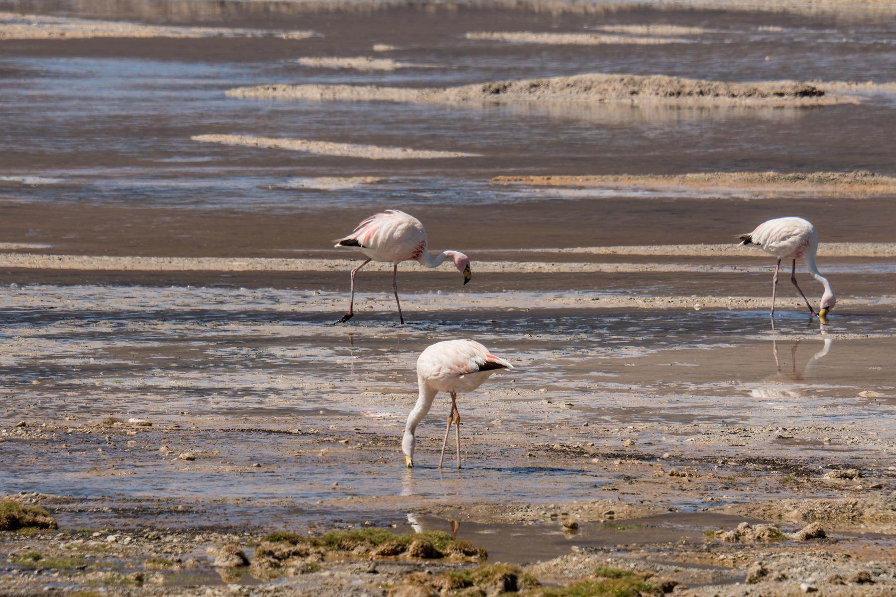 Wir wollten zu den Balcones de Pissis, unterhalb des Mt. Pissis. Der Mt. Pissis ist der zweithöchste Vulkan der Erde und die Piste dahin spektakulär. Dank des Minenverkehrs auf großen Teilen der Piste ist auch die Piste selbst spektakulär gut in Schuss. Unser Steyr "Ben" hat die Höhe auf bis zu 4750 Meter über Null gut gemeistert und im optimalen Drehzahlbereich nur wenig gerußt - wir dagegen machten teilweise die erste Bekanntschaft mit der Höhenkrankheit. Für uns hieß es deshalb: wieder runter fahren. Nichts desto trotz war der Ausflug zu den Balcones de Pissis supertoll. In den Lagunen konnten wir Flamingos beobachten, links und rechts der Piste waren wieder kleinere und größere Guanako-Herden zu sehen und das Wetter mit seinem blauen Himmel und den spektakulären Gewitterwolken rundete das Bild meisterhaft ab.