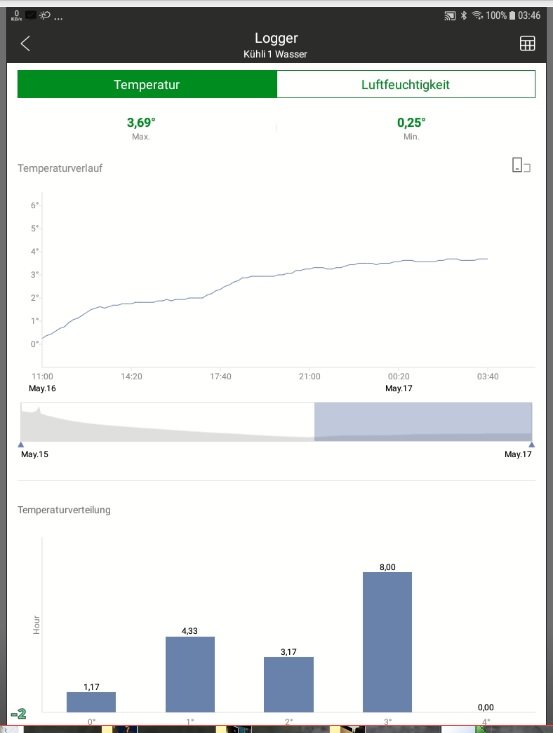Ist ja schon fast wieder voll, trotz Poolpumpe Kühlis usw usw Verbrauch heute, wird halt auch hier langsam Sommer :mrgreen: Den Spannungsfall von AKW1 habe ich mit der neuen Verkabelung nun auch im Griff. :) Hallo! Mich würde interessieren, wie sich Hyserese-Schwankungen auf den Temperaturverlauf im Kühlgut auswirken, in Anlehnung an die Messungen von deacheapa und christiancastro. Beide haben die Temperaturschwankungen in der Luft gemessen. Ich schlage folgende Messungen vor. Ich selbst kann es nicht durchführen, weil mir die notwendigen Messeinrichtungen fehlen. Zwei Messungen parallel. Einmal in der Luft des Kühli und gleichzeitig m Kühlgut. Als Kühlgut eine dünnwandige 1 l Kunststoffflasche mit Wasser gefüllt und durch den Flaschenhals einen Temperatursensor in das Wasser gesteckt. Messbeginn, wenn das Wasser die Temperatur des Kühli erreicht hat, am besten eine Nacht lang kühlen lassen. Den Kühli auf eine Energieform, die regelt stellen. Vielen Dank Scout Je nach Größe Volumen würde ich vermuten das es nur zu äußerst geringen Schwankungen kommen wird. Leider fehlt mir im Moment dazu auch ein Sensor mit entsprechendem Fühler der Loggen kann. Wenn wer so einen kennt für Android, gerne hier mitteilen. Werde selber auch mal nach so was suchen. Ps 30-45€ empfinde ich für die Dinger als etwas happig. Amazon Link Amazon Link Amazon Link Habe mir mal noch drei der Dinger gekauft, --> Link werde nur die Platine in einen sehr dünnen verschließbaren Beutel tun, und den dann in ein Gefäß/Kunststoffbox mit wenigstens 1l Wasser versenken. Einen 2ten dann ins Frostfach zwischen zwei Fleischscheiben. Die Dinger kann ich wenigstens danach für wichtige Dinge nutzen. Und nur 7,50€ das Stück.