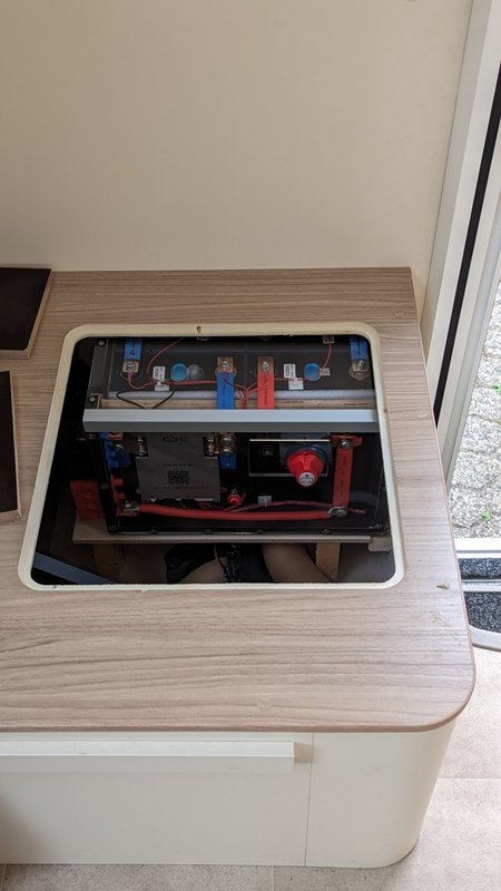Die Originalverkabelung am Bleiklotz war recht dünn. Wie dünn genau, weiß ich nicht. Ich habe einen 2000 W Sinus WR, der kommt mit dickeren Strippen daher. Den hatte ich bisher direkt an den Batteriepolen angeschlossen und mich auf dessen interne Sicherungen verlassen. Das wird jetzt natürlich alles durch das BMS laufen. Wobei der WR nur für Ebikes, Computer, Telefon etc. gebraucht wird. Kein Fön, keine Klimaanlage, kein Backofen, keine Kaffeemaschine oder Herdplatte. Könnte man mit 25mm^2 auskommen?