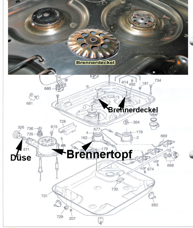Warum wurde Brenneroberteil und Düse getauscht, wegen dem Russproblem oder ist das Problem seit dem Tausch? Das Problem besteht schon länger. Gas habe ich schon überall getankt, LPG oder bevorzugt 100% Propan (Wintergas) in unserer Nähe. Gasfilter ist sauber, bei den anderen Flammen tritt es nicht so stark auf. Die Größe der neuen Düse entspricht der alten.(72) Hallo dermobilist, ich weis nicht wie dein Herd aussieht und die Einbauart, aber vlt. entspricht er unserem. Dann kannst du ja mal meine Anfrage und die Antworten anschauen. Sind auch Bilder von unserem Herd dabei. --> Link Schlimmer wird es übrigens wenn das Kochgeschirr einen größeren Durchmesser hat und damit auch weniger Luft dran kommt. Gruß Hans Moin, bei mir hatte sich Getier (Spinne) in der Luftzuführung (in den Röhren die zu jeder kochstelle führen) eingerichtet. Dadurch weniger Luft, schlechte Verbrennung - rußige Flamme. Munter bleiben Gruß Mat Danke für die Rückmeldungen. Es verdichtet sich der Verdacht, dass (zeitweise) zu wenig Luft am Brenner ankommt. Um dem auf den Grund zu gehen, wäre eine Schemazeichnung der einzelnen Brennstellen hilfreich. So könnte man auf die Suche gehen bzw. Abhilfe schaffen