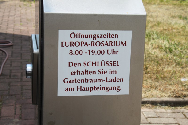 ![]() Heute haben wir noch die V/E-Station entdeckt, diese liegt gleich in der Nähe am Haupteingang des Rosarium. Den Schlüssel bekommt man dort gegen Abgabe eines Pfandes und einer Gebühr von 2€. Unbegrenztes Frischwasser mit ordentlich Druck und ein Bodeneinlass ist vorhanden.