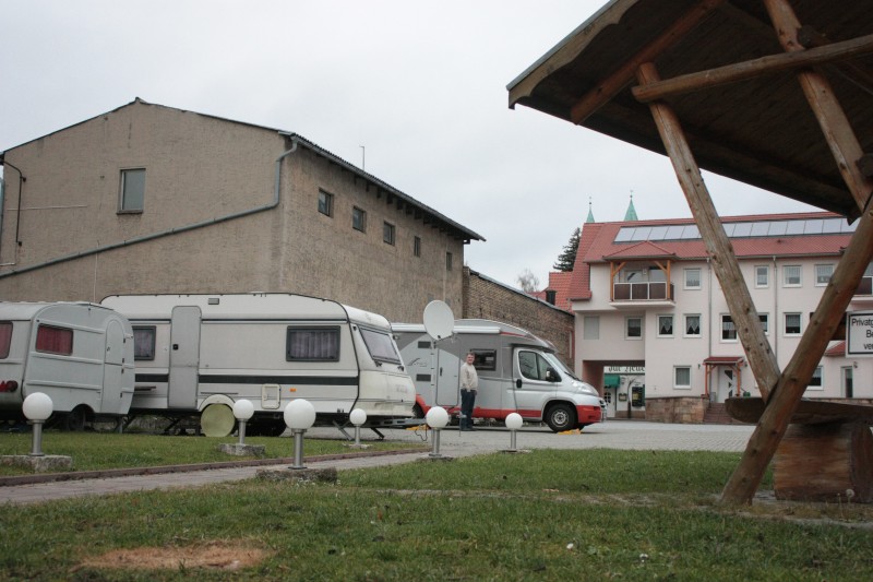 Kosten pro Nacht: 8,- Euro, Strom kostet zusätzliche 2,- Euro. Toiletten sind vorhanden, kosten aber extra und wir haben sie nicht genutzt. V+E soll laut Bordatlas auch da sein, konnten wir aber nicht finden. Die Zufahrt erfolgt durch ein Tor im Haus, die Durchfahrtshöhe ist nur 3,30. Auch sollte der Wendekreis vom Womo nicht zu groß sein, sonst wirds knapp beim Rangieren an der Ausfahrt. Also nichts für Dickschiffe. Der Stellplatz ist im Hof hinter dem Parkplätzen des dazugehörigen Hotels mit Restaurantbetrieb, direkt an der Unstrut. Eine Grillhütte und Sitzgelegenheiten auf der Wiese am Fluss sind vorhanden und insgesamt recht hübsch angelegt. Ein bisschen störend war morgens der Berufsverkehr auf der nahegelegenen Brücke. Über Nacht war es angenehm ruhig. Der Betreiber hat einige Wohnwagen fest stehen, die man dort vor Ort mieten kann. Netto-Markt mit Bäcker auf der anderen Flussseite ca. 500 m Fussweg.