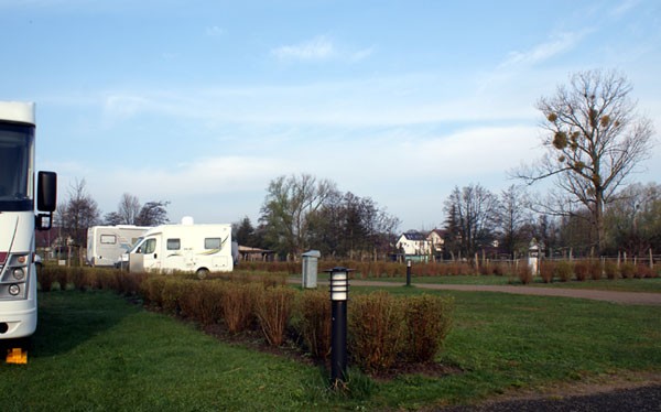 Da im vorherigen Link alle Preise aktuell angegeben werden, nur ein allgemeines kleines Update zum Stellplatz: Der Platz ist gepflegt und die einzelnen Bereiche großzügig gestaltet, so dass man ohne Platzangst auch Markise und Campingstühle nutzen kann. Die Stellplätze sind mit kleinen Hecken abgegrenzt. 4 Stellplätze sind direkt am Schilfgürtel mit ungestörten Blick auf das Stettiner Haff. Jeder Stellplatz hat Zugang zu Strom umd Wasser (Hauptplatz). Auch Abfälle können problemlos entsorgt werden. Es ist eine zentrale V/E vorhanden. Hunde und Kinder sind (gegen Gebühr) willkommen. Die Sanitäranlagen sind in Containern untergebracht, die etwas entfernt am Hafenmeisterbüro stehen. Den Schlüssel bekommt man vom Hafenmeister, sollte er anwesend sein (Bürozeiten). Die Anlagen sind einfach, aber sauber. Der Hafenmeister erzählte, dass zusätzlich zu den ca. 25 Stellplätzen auf dem SP bei Bedarf noch weitere Plätze auf dem ehemaligen Zollareal zur Verfügung gestellt werden können. Man habe hier Potenzial von bis zu 60 - 80 Plätzen. Allerdings können nicht alle Plätze mit Strom angeboten werden. Noch eine Anmerkung zu den direkten Stellplätzen am Hafenkai: Hier gibt es (theoretisch) 6 mögliche Plätze. Als wir ankamen, waren diese besetzt. Leider stellten sich zwei WoMobilisten sehr großzügig auf, so dass nur 4 Fahrzeuge Platz fanden. Bei 6 Fahrzeugen geht es dann auch etwas enger zu, so dass aus unserer Sicht der große Platz die bessere Alternative ist. Hier ein Foto des eigentlichen Stellplatzes:
