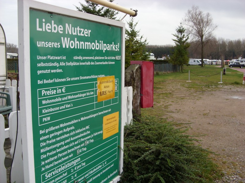 Hat uns wieder gut gefallen, trotz Sturm und Regen; Sanitäreinrichtungen sehr sauber, trotz Regen und Matsch; und Aktionspreis 8,-€! Schönes Neues Jahr! ![]() Neben Krämer´s liegt auch dieser Stellplatz. Das äussere Erscheinungsbild und letztendlich die Preispolitik haben uns eher abgeschreckt. Der Hund soll hierbei ebenfalls noch 2 Euro kosten.