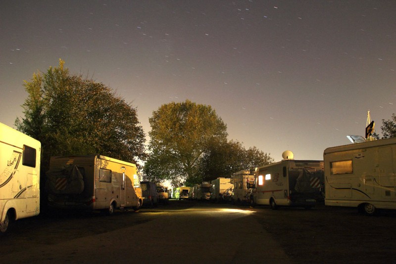 Der Weg dahin hat viele gut gepflegte Schlaglöcher. Am ohnehin schon schmalen Ende ist alles zugeparkt, was das Wenden sehr erschwert. Die letzten Plätze sind unter den großen Bäumen mit genügend "Fallobst", das die ganze Nacht teilweise lautstark aufs Dach prasselt.