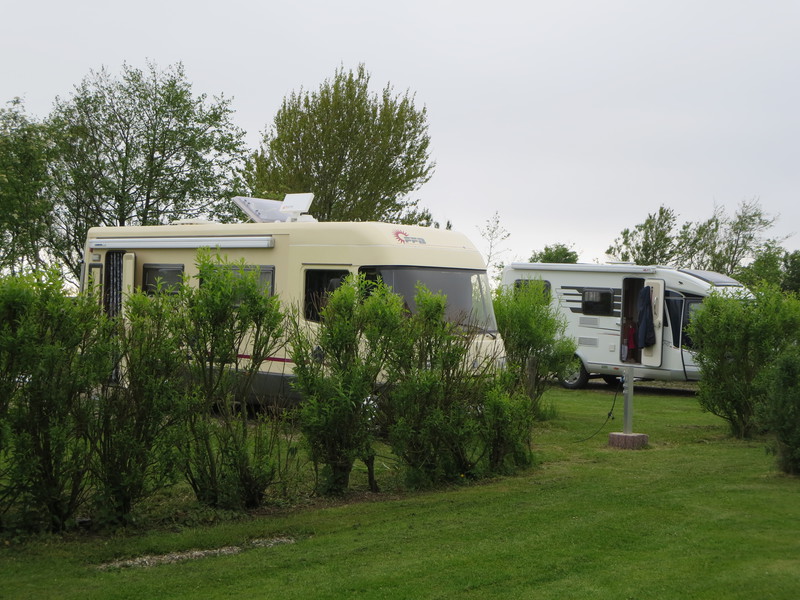 Für "Dickschiffe" gibt es ein paar Stellplätze vor dem Sanitärgebäude, die nicht parcelliert sind.