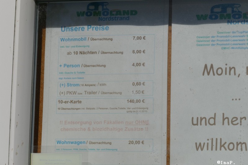 Kosten: Stellplatz 11.-€, pro Person 4,50€ ( plus Kurtaxe), Strom 80 Cent/1 kw