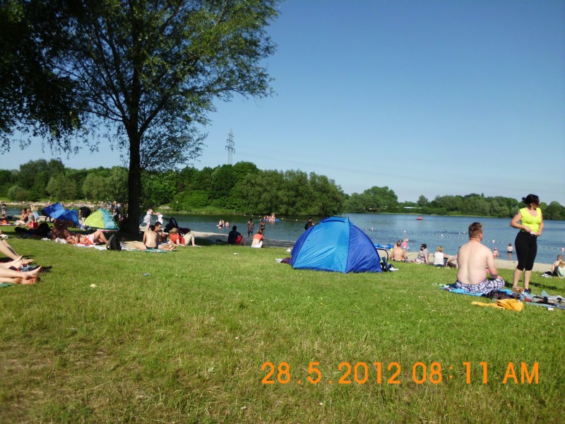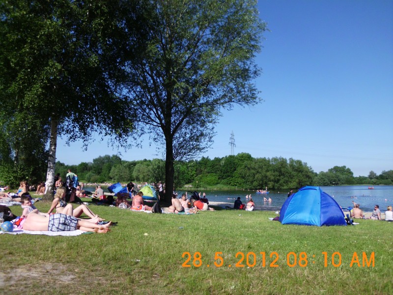 Der SP ist nach wie vor umsonst. (Noch) ist kein Strom verlegt. Bei V/E kann der supernette SP-Pächter Ole helfen. Sein Kiosk ist übrigens auch mit einer behindertengerechten Toilette versehen. Snacks, Getränke und freundliche Hilfe gibts bis spätabends in seinem Kiosk. Der Platz liegt abseits an einem See mit Bademöglichkeiten für Erwachsene und separat ausgewiesen für Kinder. Wandern, Joggen, Angeln, Bootfahren,Fahrradtouren. Alles ist dort möglich. Selbst frische Brötchen kann man bekommen, wenn man Ole freundlich fragt :wink: . Direkt an die Womo-Tür. Der Sandstrandsee wenige km von der Nordsee bietet viel Platz für Jeden und ist als SP und was die Freizeit (durch DLRG überwacht) kostenlos. Angedacht sind separate Womo-SPs und ein kleiner CP. Ole hilft immer: hier ein --> Link Und so sah es am vergangenen Wochenende dort aus: Der Stellplatz. Man kann allerdings gerne auch auf die benachbarte Wiese ausweichen neben Oles Wohnwagen. Stehzeit unbegrenzt. Ole passt auf! Wie gesagt, 20 Meter weiter ist der Strand um die Ecke.
