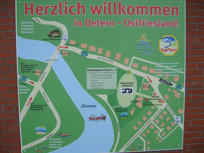 :P obwohl wir schon häufiger diesen tollen Stellplatz besucht haben, hatte ich ganz vergessen, euch dieses nette "Plätzchen" hier genauer vorzustellen. Also, mitten im Herzen Ostfrieslands, etwas östlich von Leer, direkt an dem Flüsschen Jümme, befindet sich das Dörfchen Detern-Stickhausen. --> Link Ob Baden, Schwimmen, Paddeln, Surfen, Angeln, Radfahren, Inline-Skaten, Nordic-Walking, Wandern oder Reiten, hier findet garantiert jeder seinen Freizeitspaß :!: Auch für kleine und große Womo-Treffen ein idealer SP, denn direkt am Platz befindet sich großer "Clubraum" mit kleiner Küche :!: Dazu hier nun alle wichtigen Infos "garniert" mit eigenen Fotos: :P