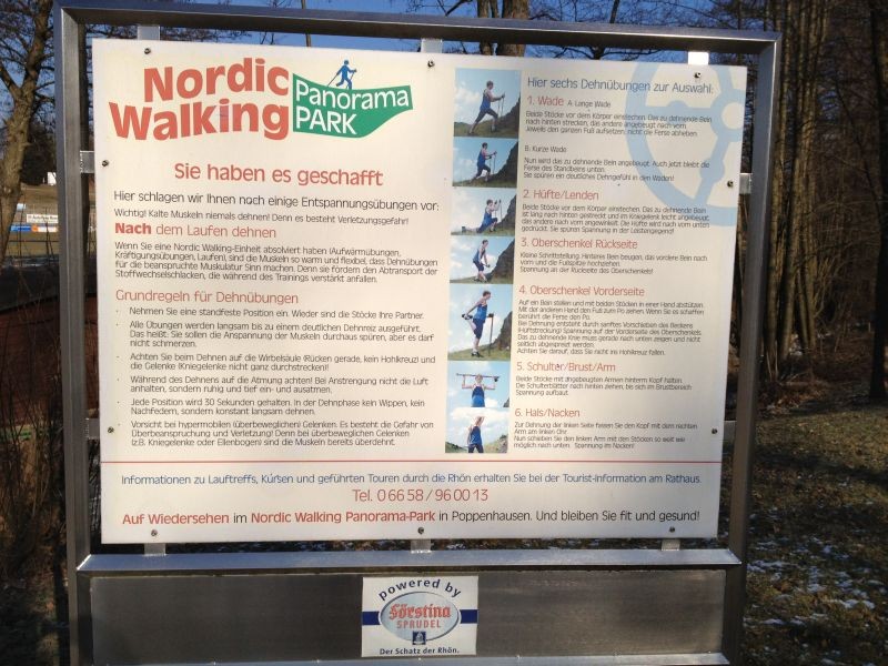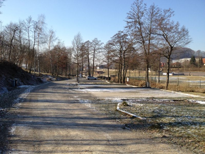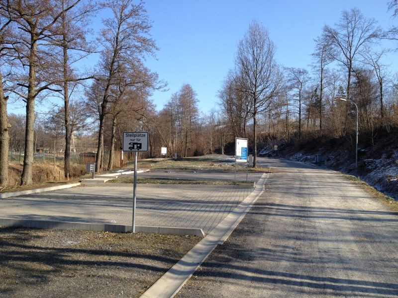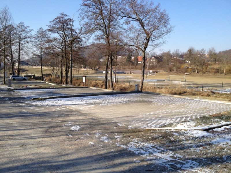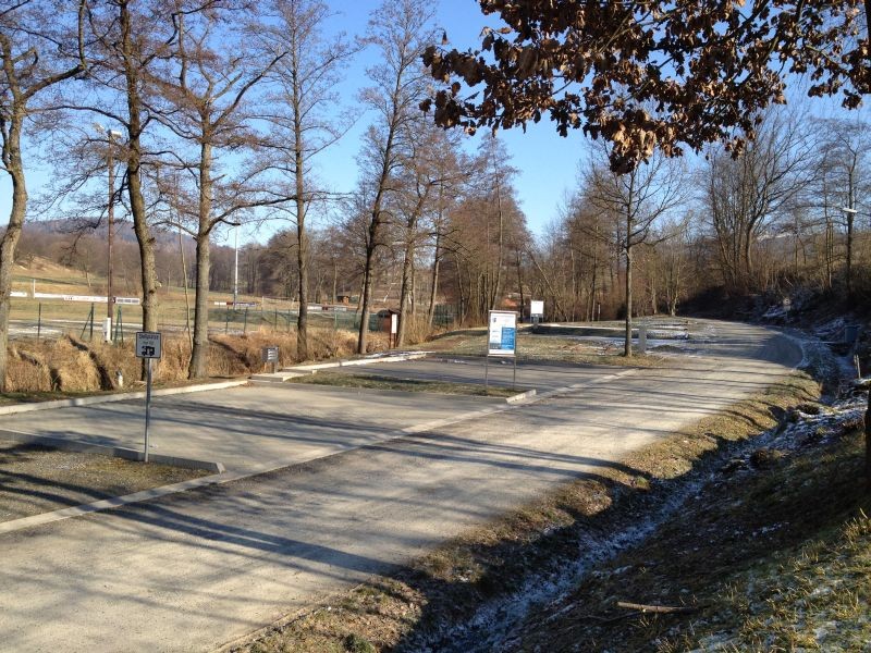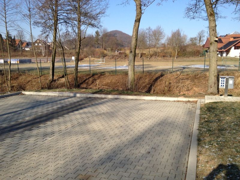 Stellplatz für 4 Wohnmobile auf gepflasterten Plätzen (weitere Ausweich-Plätze auf Schotter) am Rande des Ortes, direkt am Nordic-Walking-Panoramapark mit Kneipp-Anlage.