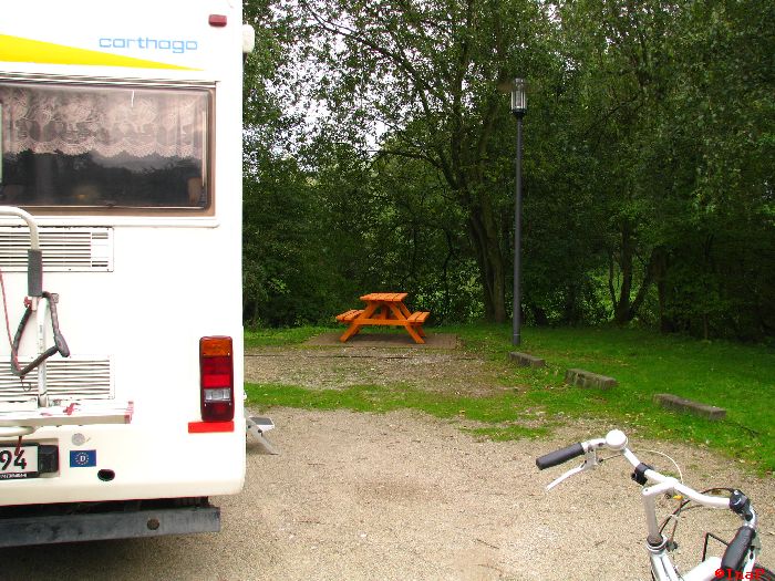Er gehört inzwischen zu den TOP Plätzen und kostet 3 Euro (am Automaten zu zahlen). Die Ver- und Entsorgung ist ein Stück weiter am Atlantis Bad und kostenlos. Strom gibt's am Automaten für 1 €. Morgens um kurz nach 8.00 Uhr kam der Bäcker (zu früh für uns allerdings ;)) In der Eissporthalle war bis 23.00 Uhr ziemlich laute Musik, uns hat es aber nicht gestört, weil wir eh nicht früher schlafen gehen. Bei uns war der Platz sehr gut besucht, wir haben gerade noch das letzte freie Stückchen erwischt. Strom gab es aber noch für 4 weitere Mobile, ich weiß nur nicht, wo die noch hin sollten. Einen Ausweichplatz etwas entfernt gibt es auch, aber der ist ohne Strom. Zum Schluss noch ein Bild. Hallo