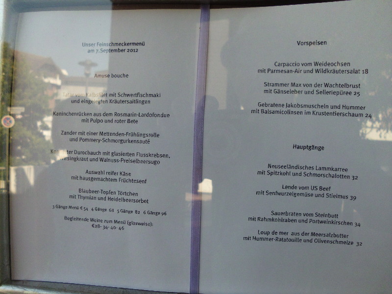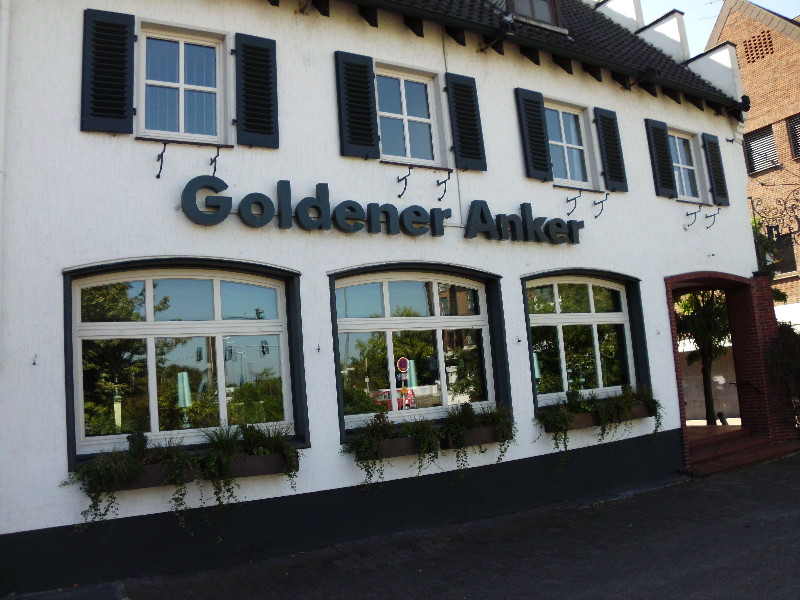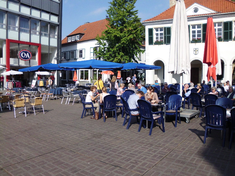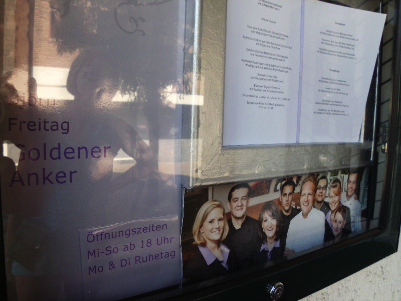 Ungefähr 100 m vom Platz befindet sich gleich ein gutsortierter Kiosk. Die Fußgängerzone beginnt dann 100 m weiter. Das erste Restaurant befindet sich jedoch schon auf der anderen Seite der Brücke. Es heißt "Goldener Anker" und wird betrieben vom Sternekoch Björn Freitag. Ganz locker übrigens, wie alles hier: