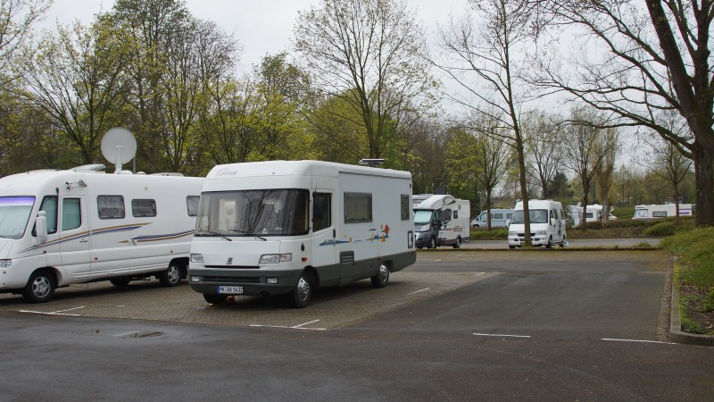 Über 60 (!) Plätze unter Bäumen, V+E, Gebühr 5,-€/Nacht, Strom (Automat) 0,50 €/kWh, Frischwasserautomat: 0,50€/50 l GPS: N 51° 50' 06"/E 06° 37' 53"