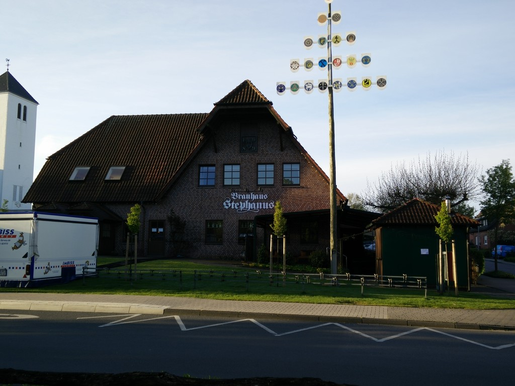 der Stellplatz ist gut. Er eignet sich hervorragend als Ausgangspunkt für Radtouren in die münsterländische Parklandschaft. Er liegt leider ca. 1,5 km vom Zentrum entfernt, dafür aber direkt neben einer Kirche. Guss clebre Dieser Stellplatz befindet sich hinter der Brauerei Stephanus und ist gut ausgeschildert. Leider waren die drei "hauseigenen" Stellplätze bei unserer Ankunft schon vergeben. Der Chef hatte aber kein Problem damit, dass wir uns auf den Parkplatz vor der Brauerei stellen. Die Brauerei selber ist absolut empfehlenswert. Äusserst leckeres Essen und das Bier war ein Genuß ;D Die Nacht selber sehr ruhig. Wer also in der Gegend ist und einen Stellplatz mit Einkehr sucht dem kann ich das Brauhaus Stephanus absolut empfehlen. Ideale Einkehr auf dem Weg zu Obelink :lach: ![]() ![]() |