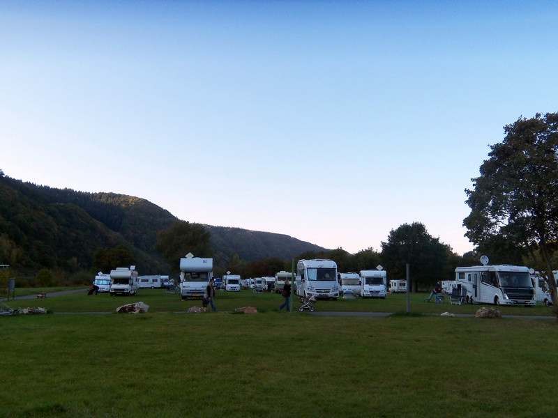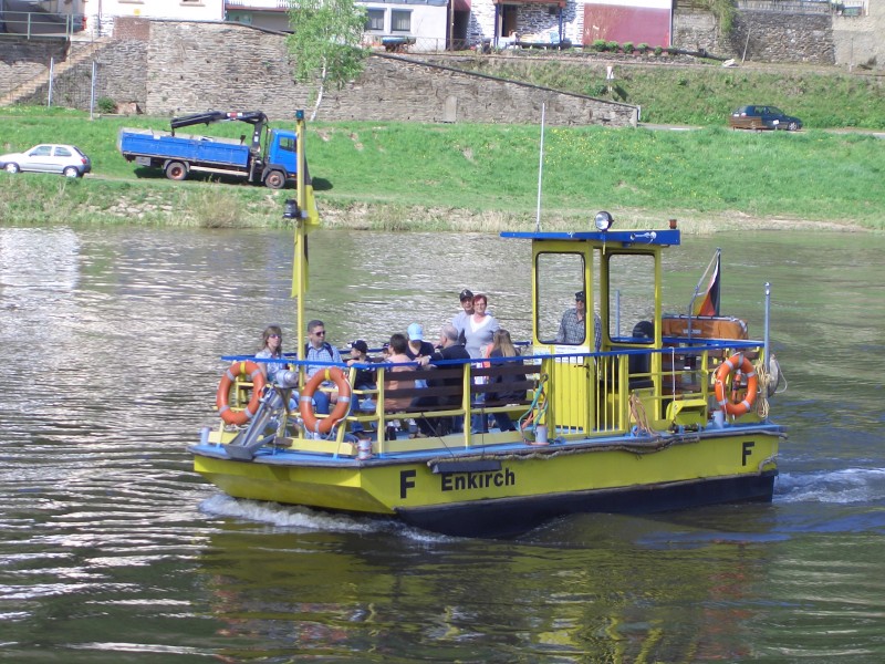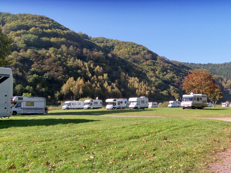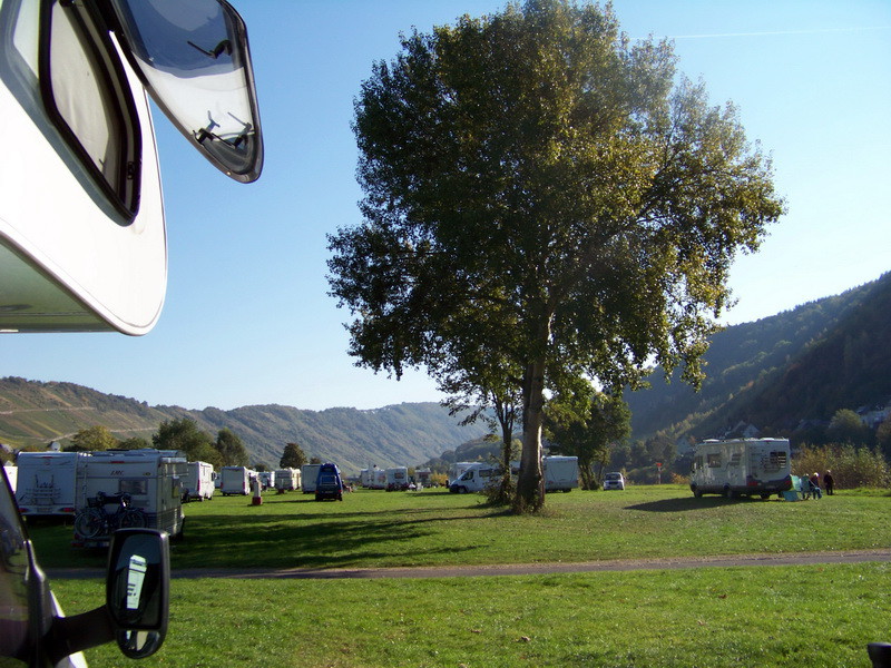Der Platz ist riesig, die Stellplätze sind nicht befestigt, man steht auch hier wie an vielen Orten der Mosel auf einer Wiese und es herrscht dort ein ziemliches Durcheinander. Am Platz ist eine kleine Personenfähre um auf die gegenüber liegende Moselseite zu gelangen. Preis der Fähre pro Person 1,-€ Fahrrad 1,-€ Die Anlegestelle der Fähre dient auch der Moselschifffahrt, Bernkastel-Kues wird als entferntestes Ziel angefahren, Fahrzeit ca. 3 Std. Kosten einfache Fahrt mit Fahrrad 18,-€