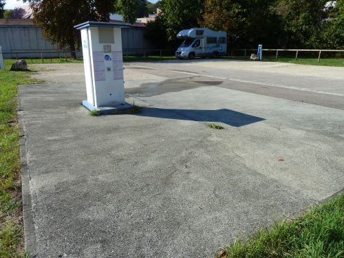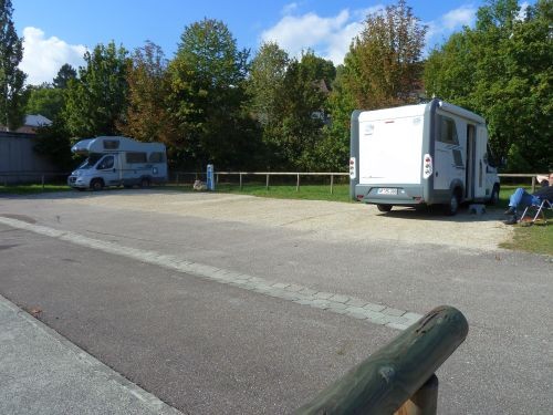 Der Stellplatz ist für ca. 10 Wohnmobile, kostenlos, V+E vorhanden