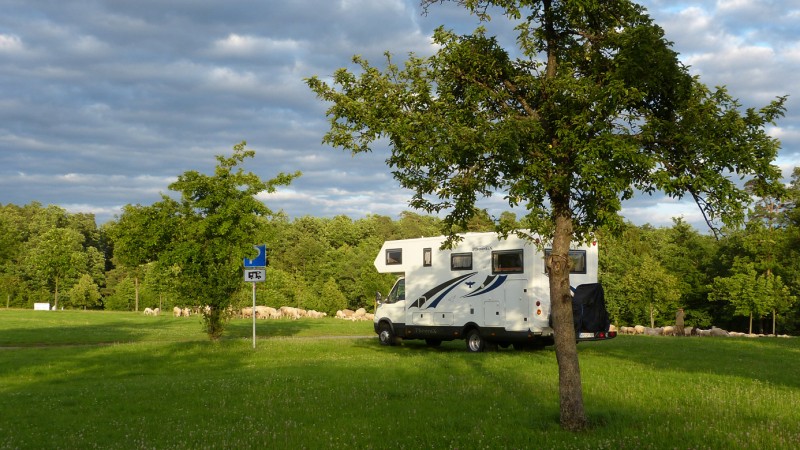 Inzwischen ist es wohl ein offizieller Stellplatz. Herrlich ruhig gelegen. So richtig was für Naturliebhaber. Zu sehen gibt es Schafe und Störche.