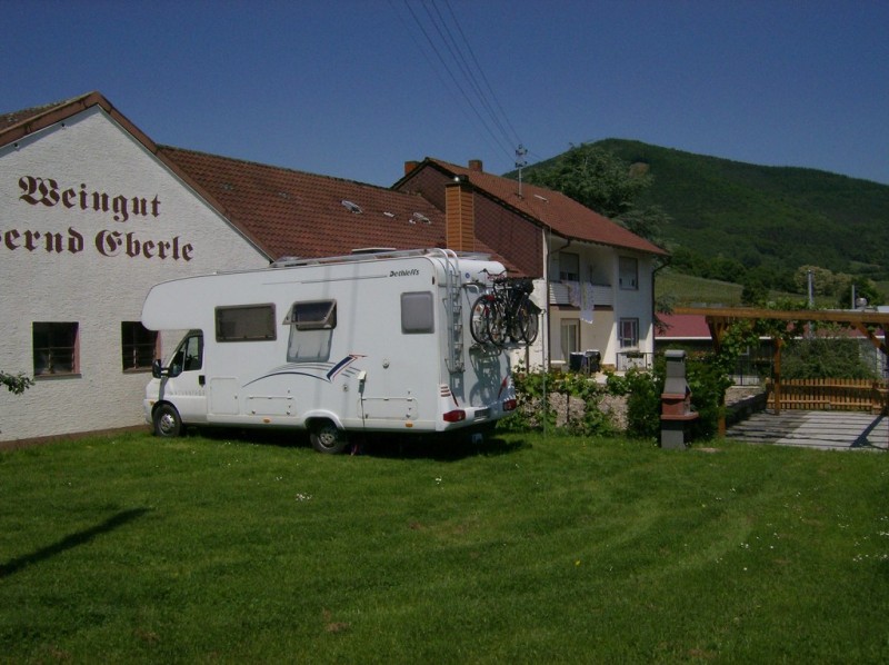 der Link zum Zielpunkt stimmt nicht ganz: die genauen Koordinaten lauten: 8.077484 49.251732 außerdem heißt der Ort nicht Frankweiler sondern BURRWEILER Weingut Bernd Eberle Am Schlossberg 76835 Burrweiler Stellplätze an verschiedenen Stellen ums Haus herum, sehr ruhige Lage. In Burrweiler gibt's noch ein Weingut Eberle - Hermann Eberle, Böchinger Straße, dort gibt's auch Stellplätze. Hier ein Bild vom Weingut Bernd Eberle: Weingut Bernd Eberle
