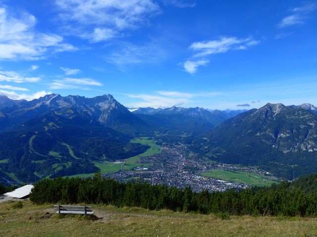 Blick vom Wank über Garmisch-Partenkirchen und rüber zur Zugspitze