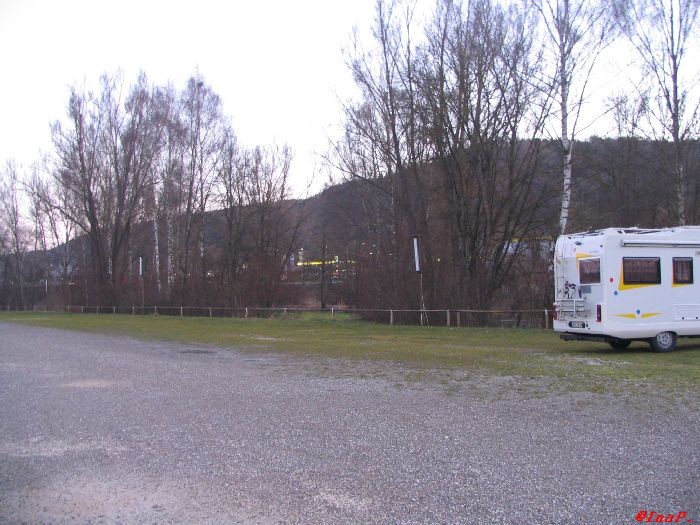 Der Stellplatz liegt hinter den Volksfestplatz bzw. P&R Platz direkt an der Altmühl. Auf der linken Seite zum Festplatz hin stehen 4-6 Stromsäulen a 6 Anschlüsse. Der Platz besteht aus Wiese und Schotter und ist recht gerade. Er kostet 7 Euro für 24 Stunden und 0,50 Euro für Strom, die man entweder am Automat oder abends beim Platzwart entrichten kann, der vorbei schaut. Der Weg zur Altstadt ist beschildert und führt an der Altmühl entlang ca 1,5 km. Ein Edeka-Markt befindet sich direkt auf der anderen Seite der Altmühl. Man braucht nur über die Brücke zu gehen (ca. 300 m). Dort gibt es auch einen Bäcker. Aber den braucht man nicht. Pünktlich um 8.00 uhr kam laut hupend ein Bäckerwagen vorbei! :< Die V+E befindet sich vor der Einfahrt am Volksfestplatz. Allerdings muss man sagen, dass die ersten Plätze auf der Seite mit Strom nur für geräusch-unempfindliche Menschen geeignet sind. Direkt dahinter befindet sich eine Art Bio-Strom-Kraftwerk o.ä. (dort wurden Holzschnitzel verarbeitet) das ca. alle 20-30 Minuten anspringt auch in der Nacht. Ich würde das nächste Mal lieber etwas weiter hinten stehen. Müll kann Richtung Radweg an den dafür vorgesehenen Mülleimern entsorgt werden. Teilweise getrennt. [URL=https://www.wohnmobilforum.de][IMG]https://www.wohnmobilforum.de/bilderdienst/up/Stellplatz-Eichst-tt-September-2011_fa59.JPG[/IMG][/URL]