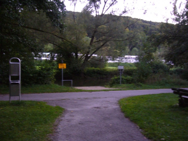 Die Zufahrt von der anderen Richtung: Dort befindet sich der Kassenautomat und die Infotafeln. ![]() Das ist der Weg an der Altmühl zur Altstadt. Dort befinden sich auch die Mülltonnen.