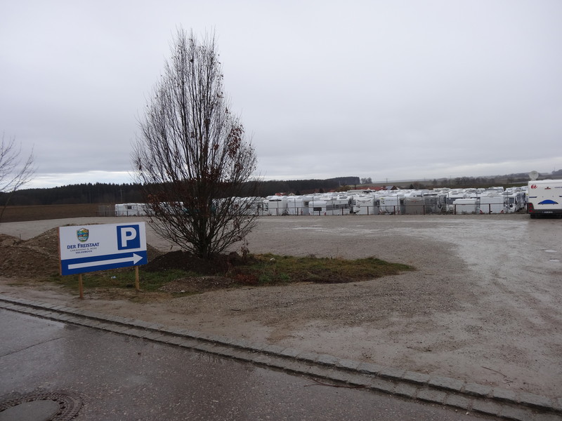 Kostenloser Stellplatz für Womo und Wowa. Bereitgestellt von mehreren Händler. Das Gelände heißt "Freistaat Bayern" Man kann den Stellplatz über die A8 Stuttgart/München Ausfahrt Sulzemoos leicht erreichen. Es haben ca. 15 Womos oder Wowa platz. Strom sowie WC wird kostenlos bereitgestellt. Für die Entsorgung und Frischwasser steht eine Sani-Station gegen Gebühr bereit. Auf den Gelände befinden sich ca.10 Händler der verschiedenen Marken. Auch ein Großer Camping und Ersatzteilausstatter ist vorhanden. Im Dezember 2007 kostete der Strom 2 KW 1 €. Wasser 2 €. Der Platz wird sogar Nachts bewacht.