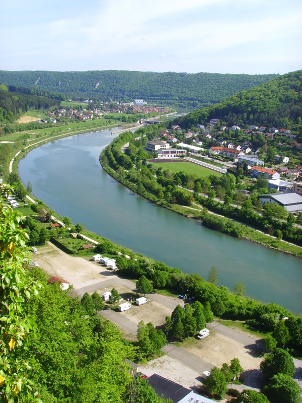Ansonsten ordentlicher Platz in sehr schöner Umgebung. Wir waren vor wenigen Tagen auf dem Platz. Liegt relativ ruhig, Einkaufsmöglichkeit wenige Schritte zum "PENNY". Empfehlenswert ist der "Drei-Burgen-Steig" mit den Ruinen "Tachenstein" und "Rabenstein" und der bewohnten "Rosenburg" mit beeindruckender Greifvogelschau. Am besten bei der Info einen A3-Übersichts-Plan abholen. Möglichkeiten zur Schiff-Fahrt nicht besonders gross, 1 x morgens, 1 x nachmittags. Am Flüsschen in knapp 1 Km Entfernung gibt es eine Schiffs-Schleuse, für Kinder sicher sehenswert (siehe Bild). Toilettenhäuschen am Platz immer noch geschlossen, Ersatz-WC an der Brücke in der Nähe. Nette und auch preisgünstige Lokale, Biergärten und Cafes am Ort.