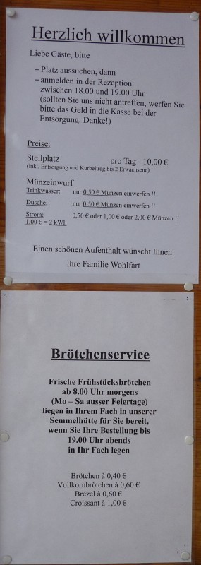 Die Stellplatzgebühr beträgt nun 10€ (incl. Entsorgung). V+E gegen Gebühr auch für Durchreisende möglich. Hier ein paar Fotos: